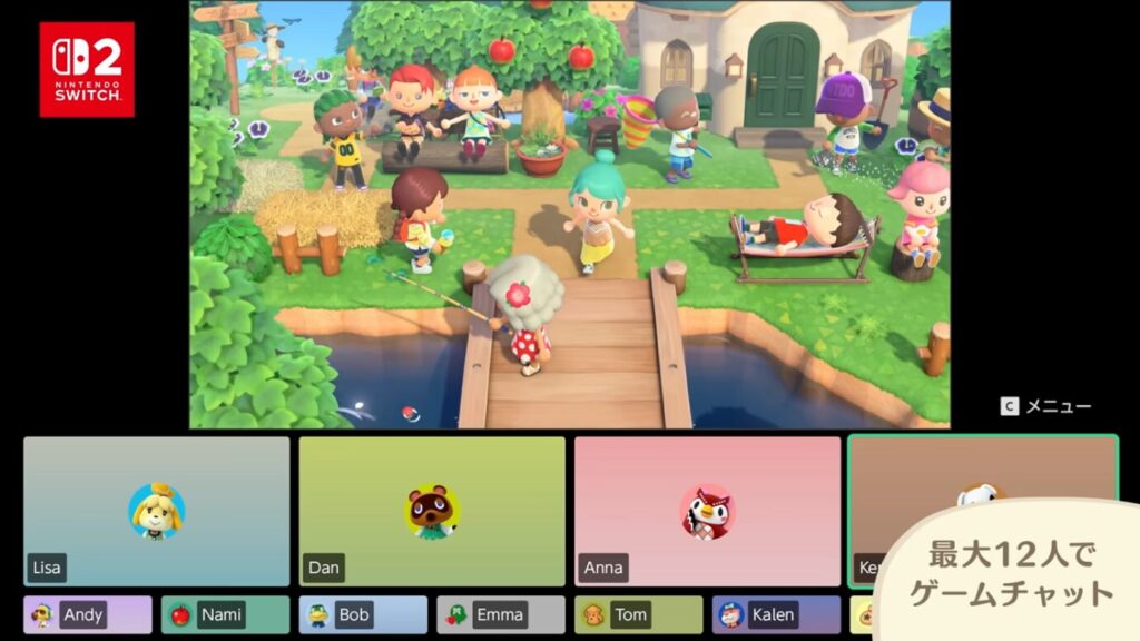 Switch 2本体に搭載された内蔵マイクを使えば、オンラインプレイ中に直接ボイスチャットが可能に!