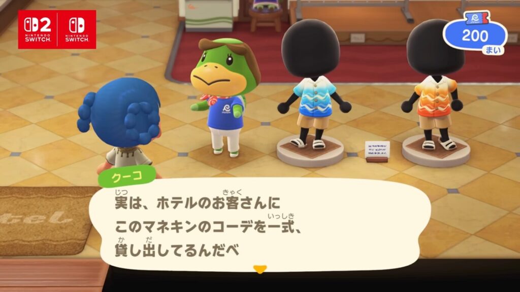 島の雰囲気やイベントに合わせて、おしゃれなコーディネートが展示され、どうぶつたちや来訪したフレンドもそれを着用できます。