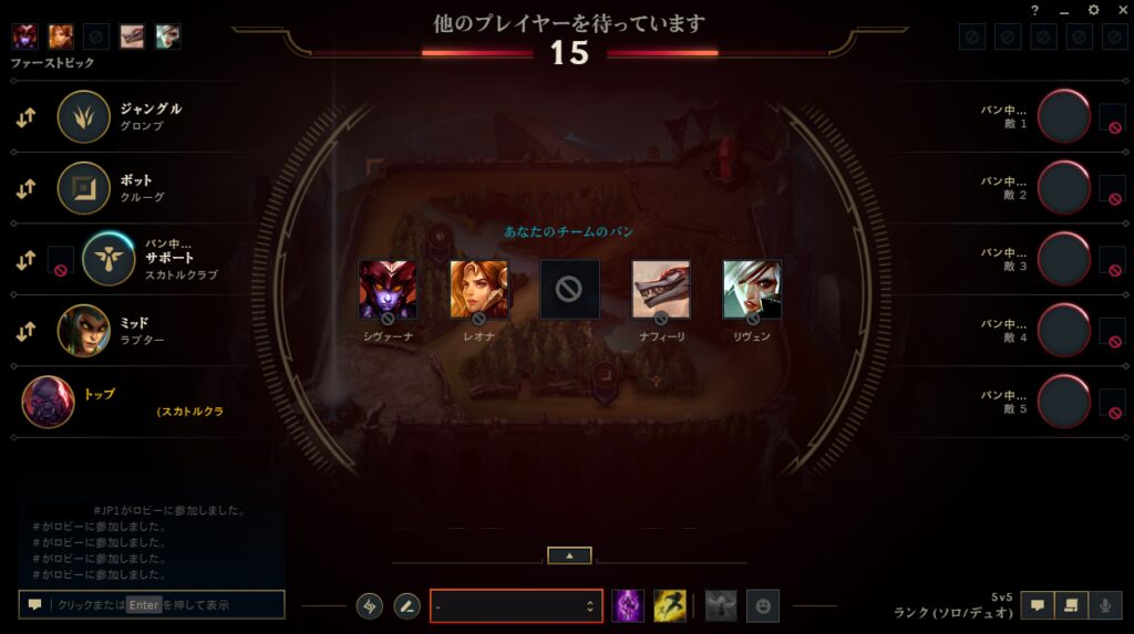 ランクでは、ゲーム開始前にBAN(禁止)チャンピオンの選択が行われます。