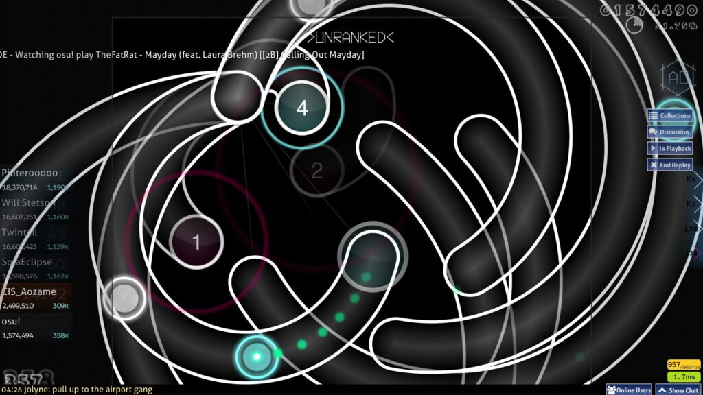 そこには、スコアも、精度も、ランキングも関係ない純粋にosu!というゲームで遊ぶことを突き詰めた世界が広がっています。