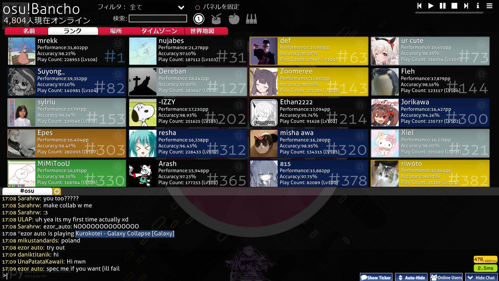 チャットを使えるようになると、osu!は「一人で黙々と遊ぶゲーム」から、世界中のプレイヤーとつながるオンラインゲームへと姿を変えます。