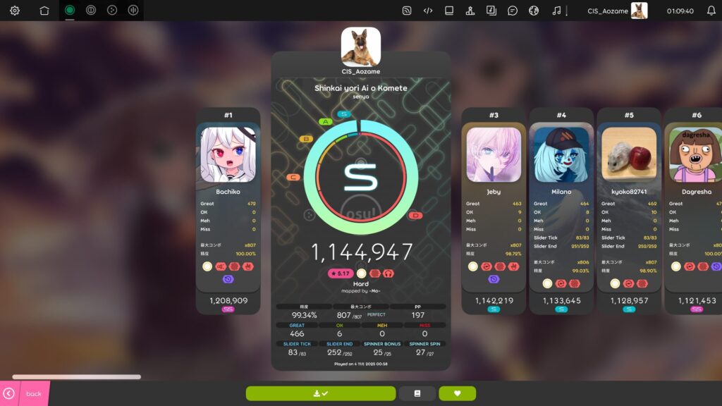 もちろん、一部の古い譜面が再現できなかったり、競技用ランキングがまだ stable に依存しているなど課題もありますが、それでも lazer の完成度は年々高まり、「普段遊ぶならlazerでいい」と言える段階に確実に近づいています。