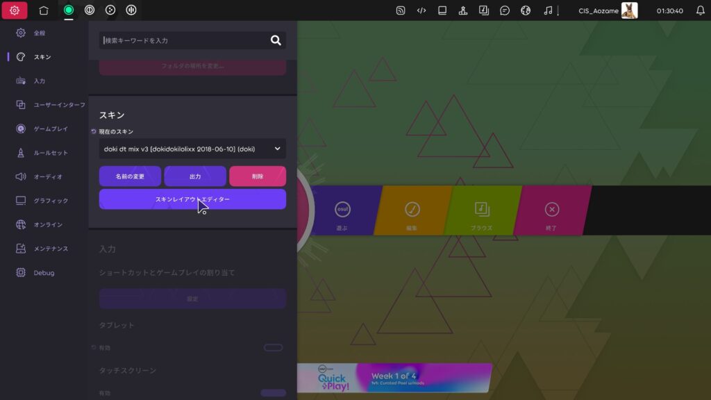 osu!lazer に追加された大きな新機能のひとつが、スキンレイアウトエディター(HUDレイアウトエディター)です。