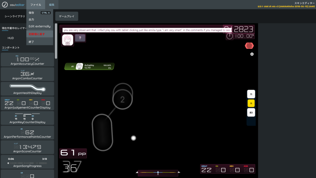今回の記事では、osu!lazer向けスキンレイアウトエディターの使い方をご紹介していくよ!
