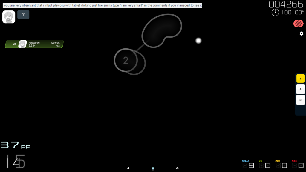 また、HUD Layer/Playfield Layerの切り替えによって、maniaやtaikoのような特殊モードでも安定した配置を維持でき、PPカウンターや精度をリアルタイムで確認できるなど、プレイフィールを向上させる機能も充実しています。