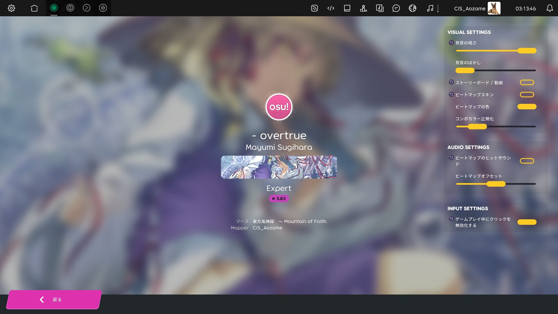 osu!lazerで曲を選んだ瞬間、ロード画面で30秒ほど固まってしまう。