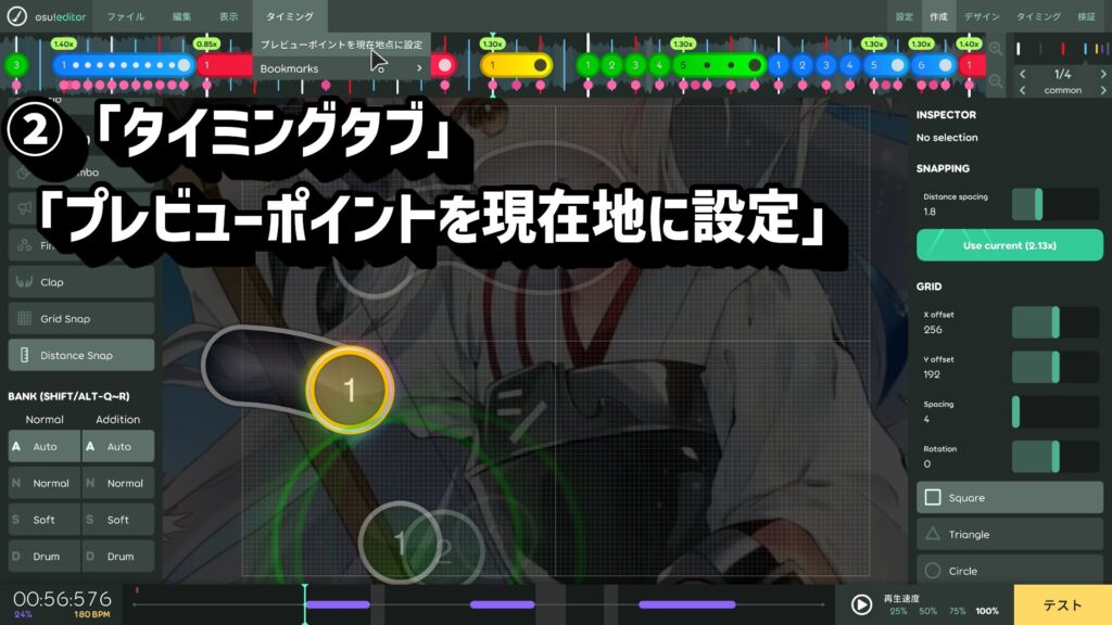 この記事では、osu!マッピングにおけるプレビューポイントの役割から、設定方法、最適な置き場所までを初心者にも分かりやすく、実例ベースで解説していきます。