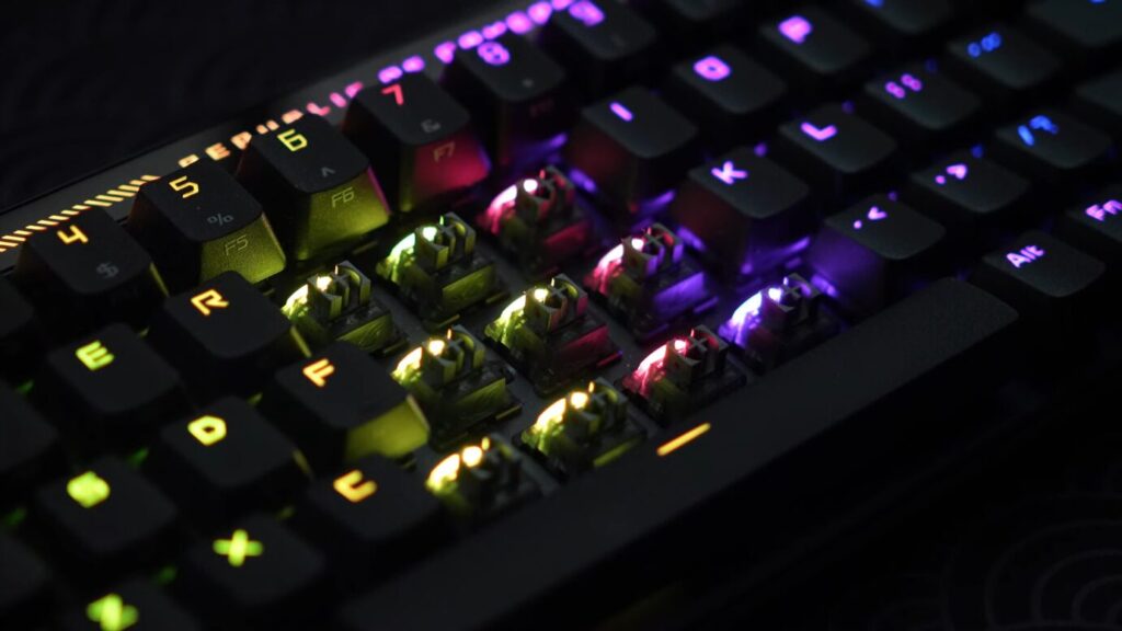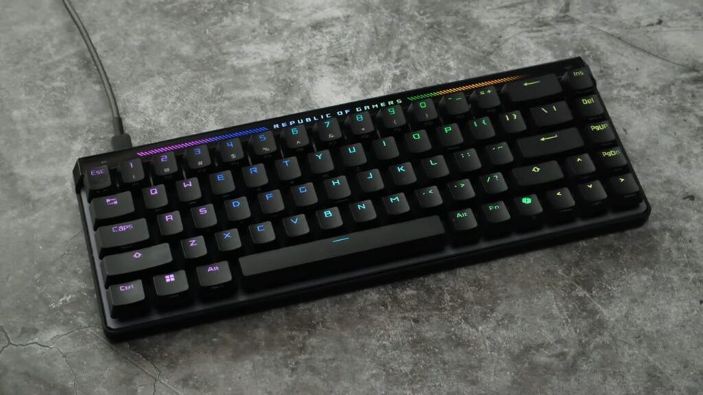 このキーボードは、コンパクトな65%レイアウトながら、ラピッドトリガー機能・8000Hzポーリングレート・HFX磁気式スイッチといった最先端技術をすべて詰め込んだ、まさにASUSの本気が伝わる次世代モデル。