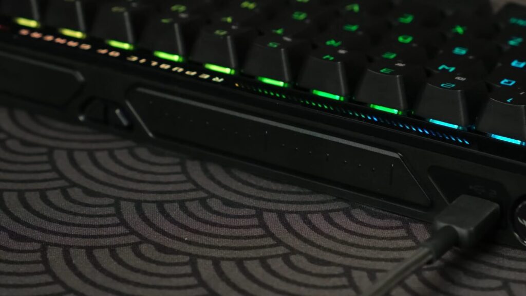 キーボード上部にはインタラクティブタッチパネルを搭載し、音量調整や照明の切り替え、作動点変更などをワンタッチで操作可能。